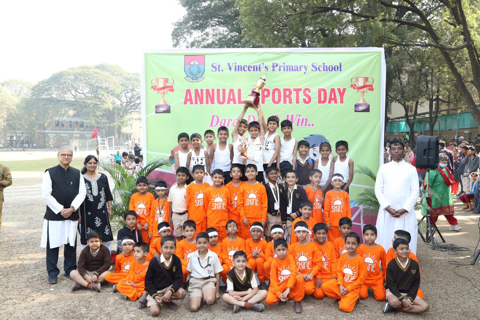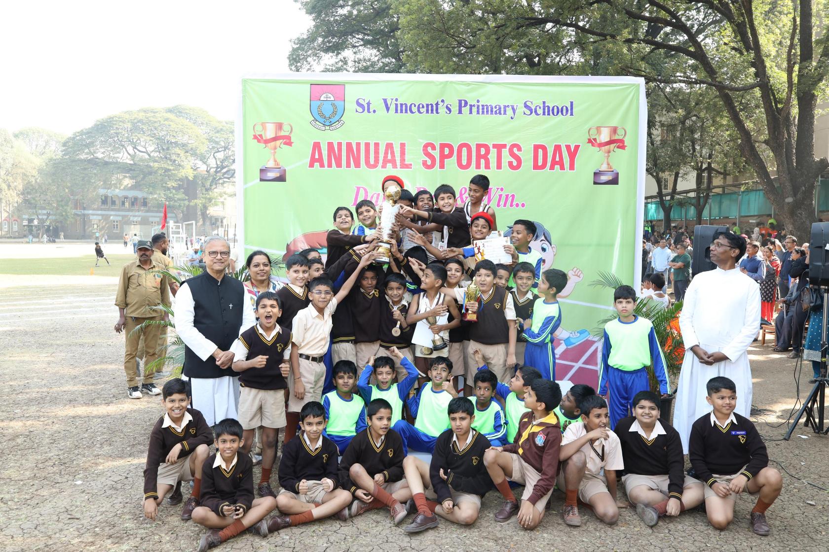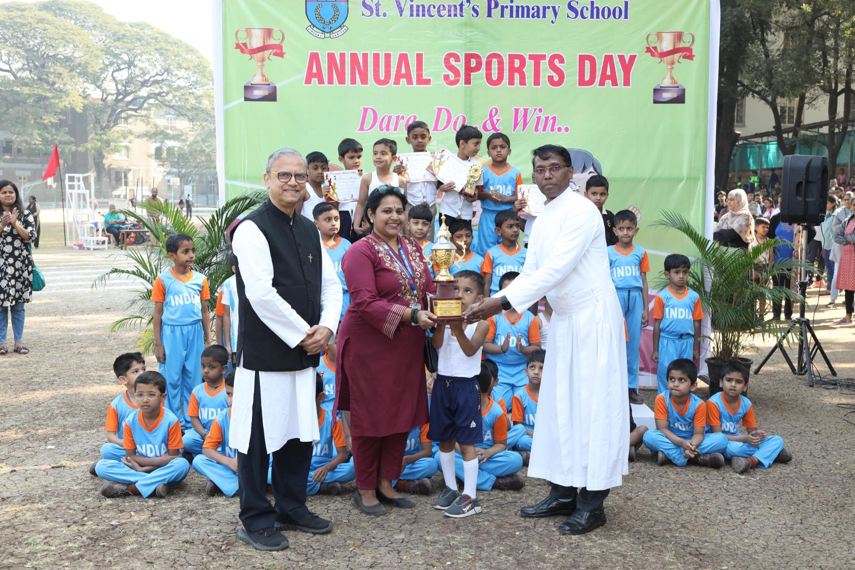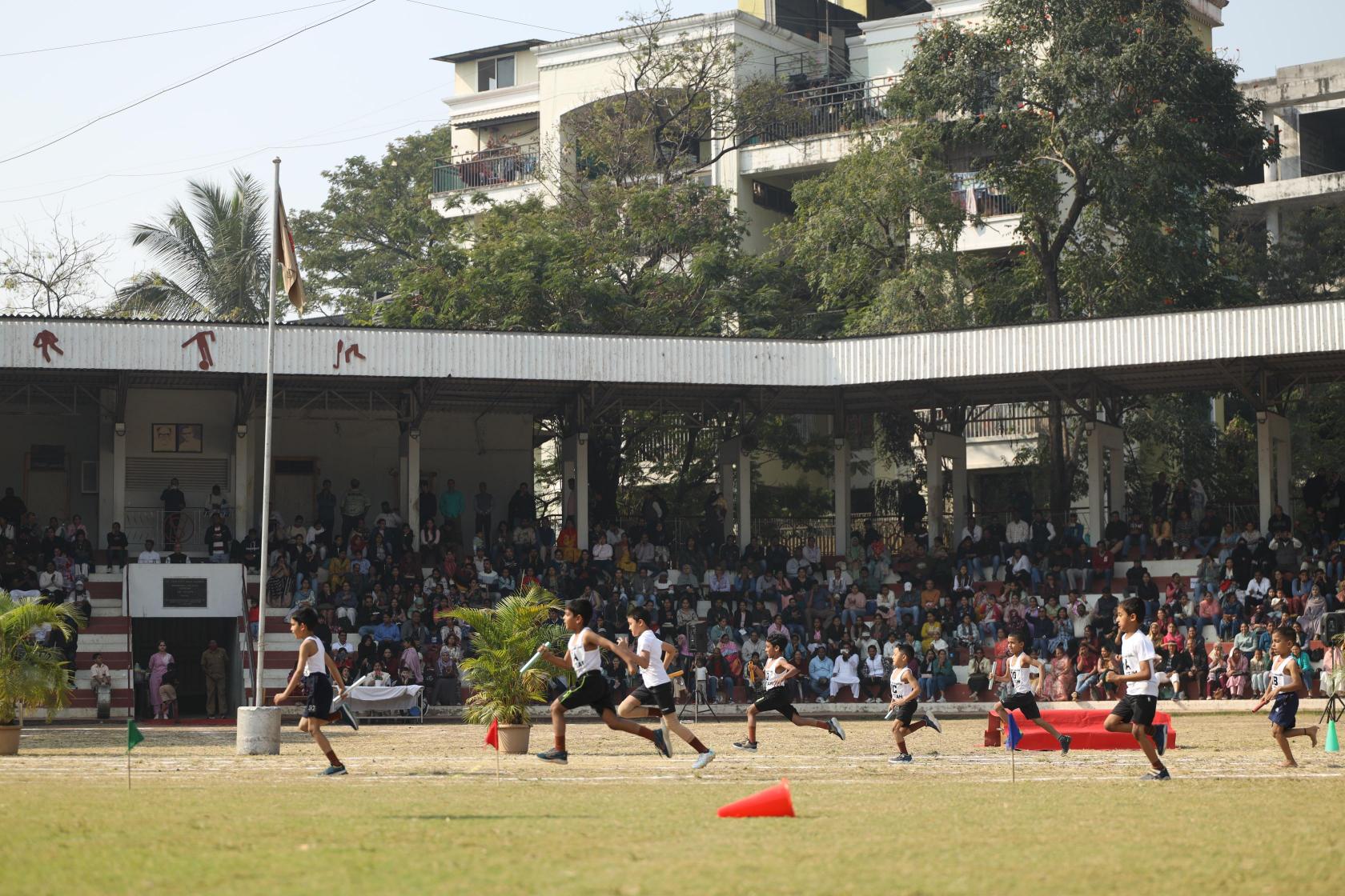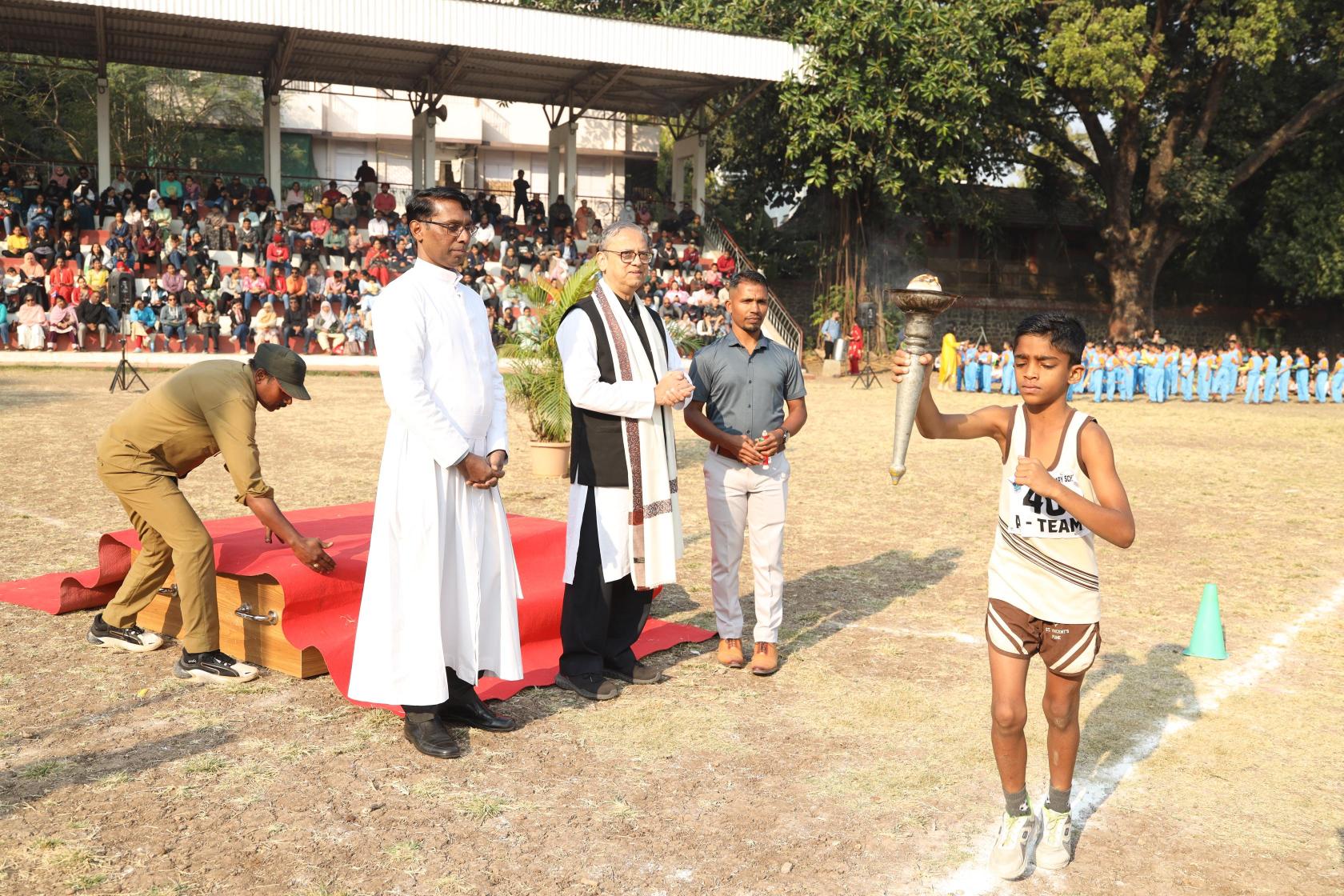 The event was inaugurated by the Chief Guest, Prof. Dr. Francis Gonsalves, S.J., who declared the Sports Day open by releasing balloons. Students of Std I to Std IV presented well-coordinated drills, followed by various athletic events such as 100 metres, 200 metres, hurdle races, and 400 metres relay. Parents’ races were also conducted.