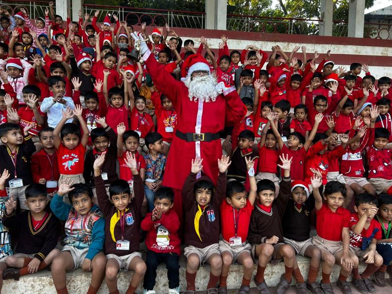 The festive joy continued with the much-awaited visit of Santa Claus, bringing smiles and excitement across the campus. Christmas celebrations were also held in each class, where students enjoyed fun-filled activities and shared moments of happiness, friendship, and together.