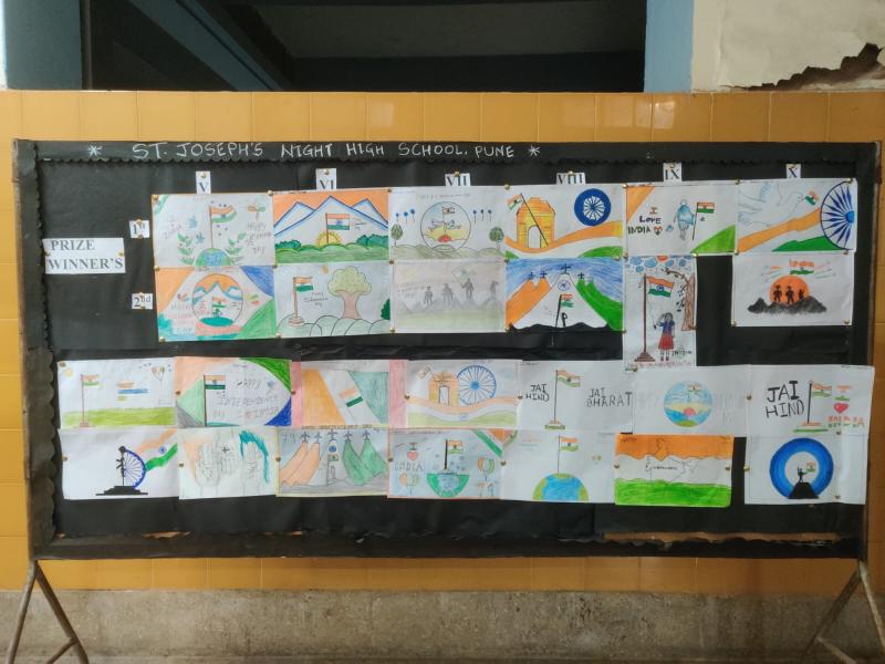 An Independence Day Drawing Competition was held at St. Joseph’s Night High School on 6th August 2025. The event saw enthusiastic participation from students, who expressed their patriotism through creative and vibrant artwork on themes like freedom, national pride, and unity.