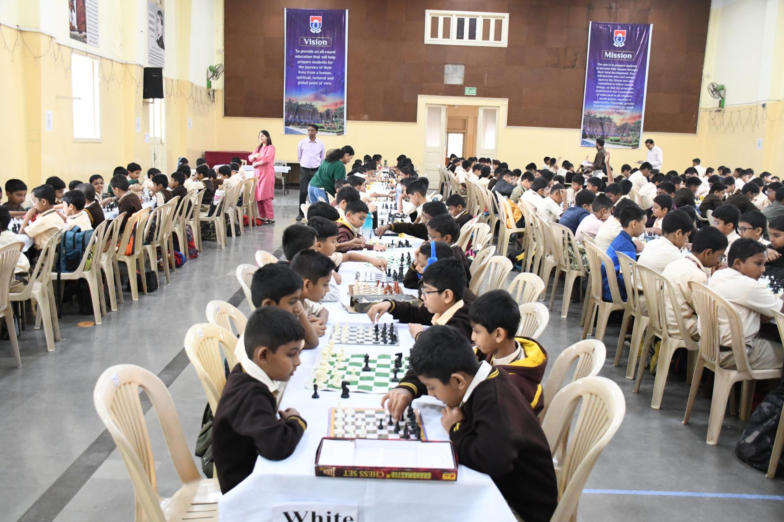class eleven. The competition was inaugurated by the Principal, Rev. Fr. Titus Thangaraj, SJ. He stresses the importance of indoor sport games and encouraged everyone to do their best.