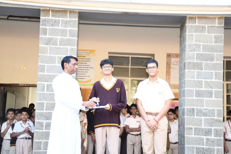 The Interclass Quiz Competition was organized for the students of Class XI on 29th September in the AV Room. The event consisted of six exciting rounds, each focusing on a different theme ranging from general knowledge to fun riddles. The competition witnessed enthusiastic participation and a close contest among the teams. After an exciting battle of wits, the winners were declared as Manav Sharma Khandale and Nevaan Pandit from class XI C, while the runners-up position was secured by Mayank Vaswani and Lakshit Patel from XI A. The winners of the competition were felicitated with a small trophy & certificate by the Principal Rev. Fr. Titus. The event proved to be both educational and enjoyable, leaving the participants and the audience enriched and inspired.