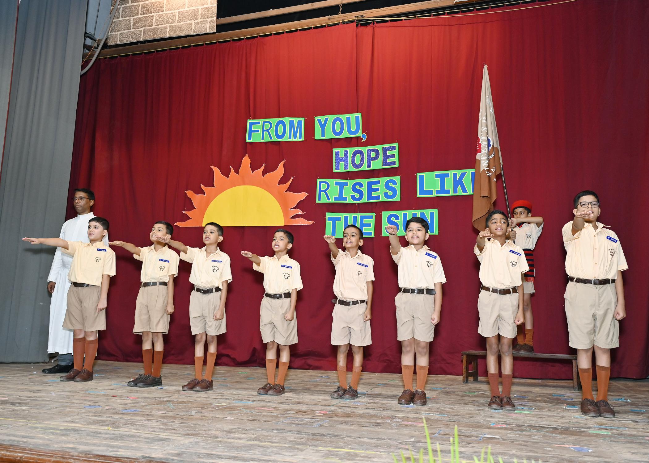 The Primary school Investiture Ceremony was held on 11th July 2025 at 10:30 am in Gulati Hall. The theme was – ‘From You, Hope Rises like the Sun’. The event began with a welcome song and a prayer. Rev. Fr. Titus, our Principal, conferred badges on the newly elected prefects. The elected prefects then took their oath in the presence of our Supervisor Mrs. Cabral, teachers and parents. Fr. Titus Thangaraj SJ addressed the gathering with an inspiring speech, encouraging the young leaders to serve with sincerity and lead by example.’