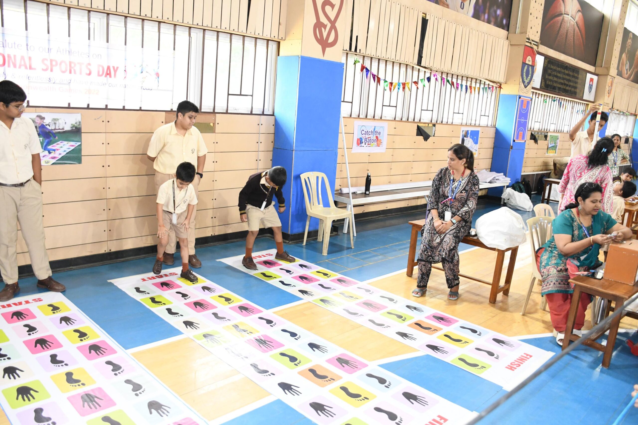 Our school joyfully celebrated National Sports Day on 28th and 29th August 2025 with great enthusiasm and participation. National Sports Day is observed every year on 29th August to mark the birth anniversary of Major Dhyan Chand, who was born in 1905. Widely regarded as one of the greatest field hockey players of all time, Dhyan Chand was the shining star of the legendary Indian hockey teams that dominated the Olympics from 1929 to 1936.To honour his legacy, the school organized two days of fun-filled activities for all the boys from LKG to Std 6. The program was conducted at the Oesch Hall (Ground Floor) and at the Basketball Court (Upstairs), where students enjoyed a wide variety of exciting games such as hopscotch, fish the bottle, roller-coaster, scroll the ball, car race, catch the baton, and many more. The entire campus was filled with laughter, cheer, and sporting spirit as the children actively participated in the events. All the teachers from the Pre-Primary and Primary section enthusiastically handled the different stalls and ensured the smooth conduct of the activities. The entire planning and setup of the games were wonderfully organized by our dedicated PE teachers – Savio Sir and Yash Sir. Adding to the festive atmosphere, there were many food stalls, serving a variety of delicious treats that everyone relished.