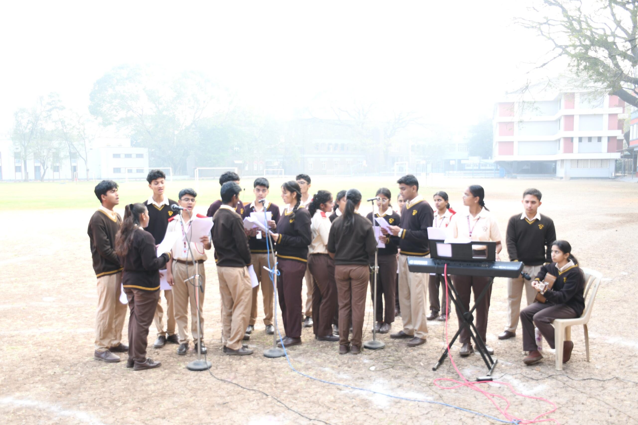 Following the ceremony, the Class 12 students participated in their final ‘Marching Out Parade’. Led by the class teachers, the graduates marched past the faculty and juniors. The event then moved to the Gulati Hall for a program hosted by the Class 11 students. The session included spot prizes to ease the emotional weight of the day, allowing students to bond one last time. A curated montage of the students’ journey of two years was screened. This retrospective captured milestones, field trips, and candid classroom moments, serving as a poignant reminder of their growth.