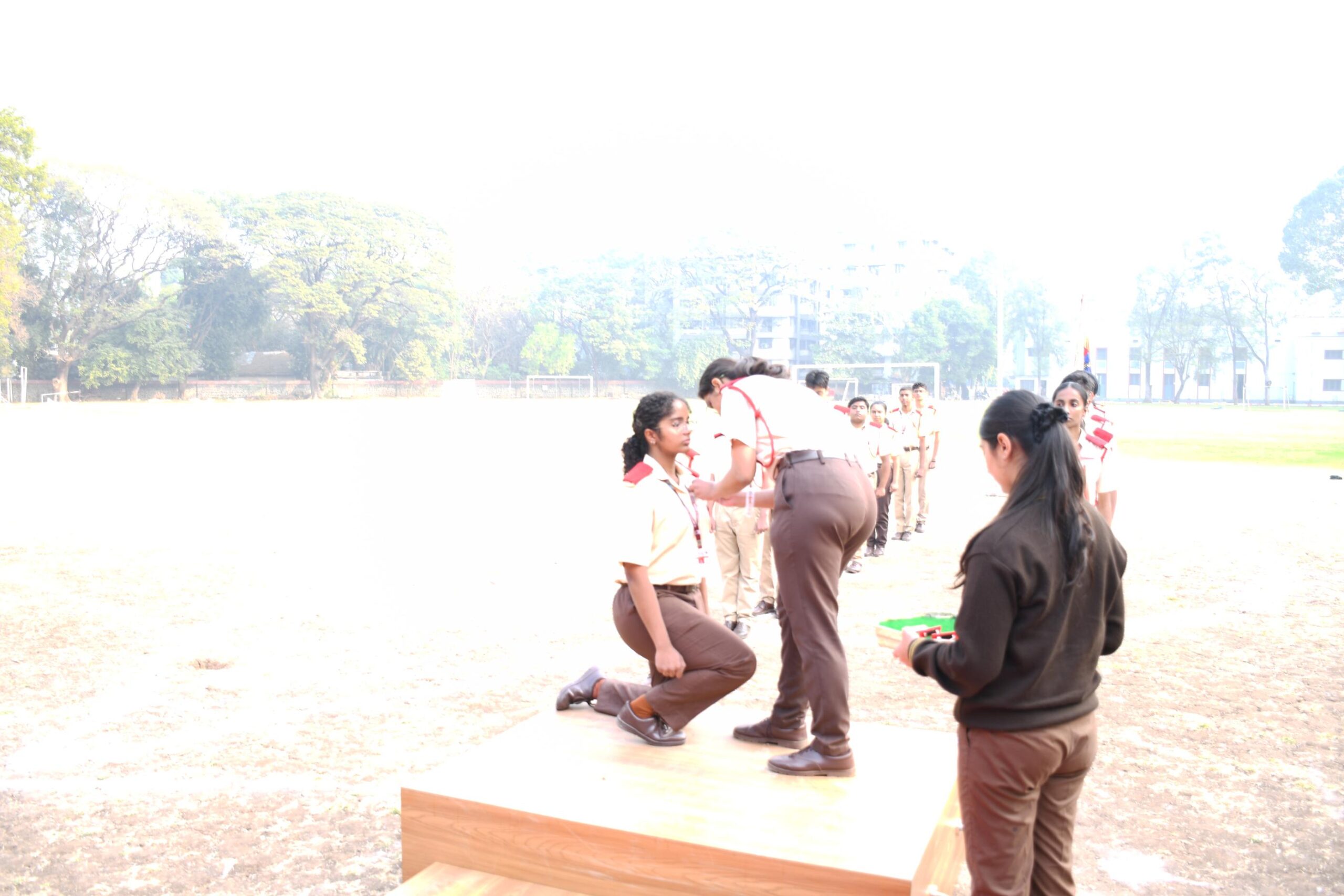 On 23 rd of January, 2026, a farewell program for the outgoing Class 12 batch was organized. The event honored the students’ contributions to the school while ensuring a formal transition of leadership. The proceedings commenced on the school grounds with a Special Assembly. The atmosphere was one of solemnity and grace. In an inspiring speech, the Principal, Fr. Titus, drew inspiration from Robert Frost’s iconic poem, The Road Not Taken. He urged the graduates to be courageous in their future endeavors, and to not be afraid to choose the road less traveled. Then the outgoing head boy, assistant head boy and assistant head girl officially handed over their badges and responsibilities to the newly elected leaders. This symbolized the continuity of the school’s traditions and values. Representing the Class of 2026, the Head Boy, Mr. Aditya Vaz, shared a touching reflection: “We’ve grown from shy smiles to confident strides. St Vincent’s has taught us that bada naam starts with your character.”